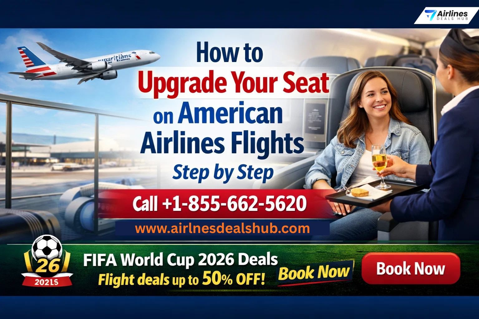 Upgrading your seat on American Airlines can transform your travel experience from ordinary to extraordinary. This comprehensive guide walks you through every possible method from online upgrades to airport requests, mileage redemptions, and last-minute deals. Whether you’re dreaming of first class lie-flat seats or simply want extra legroom, we’ll help you navigate American’s upgrade system with confidence. Plus, discover exclusive FIFA World Cup 2026 flight deals up to 50% off when booking through Airlines Deals Hub at +1-855-662-5620.